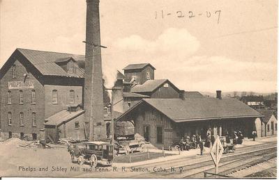 PHELPS AND SIBLEY MILL AND PENNSYLVANIA RAILROAD STATION, CUBA, NEW YORK 1907