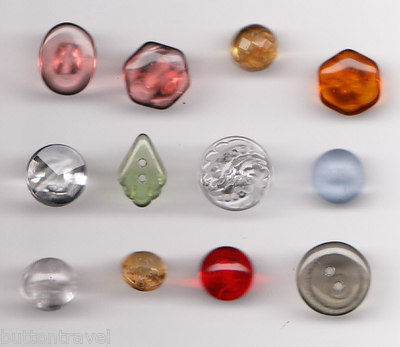 Title (ebay affiliate link): LOT of 12 DEPRESSION GLASS BUTTONS colors clear, red, blue, pink and topaz
