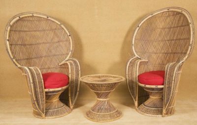Title (ebay affiliate link): Vintage Pair Woven Wicker Cobra Chairs & Coffee Table