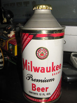 Title (ebay affiliate link): Milwaukee premium Beer Cone Top Beer Can Waukee Brewing Co. Hammonton N.J.