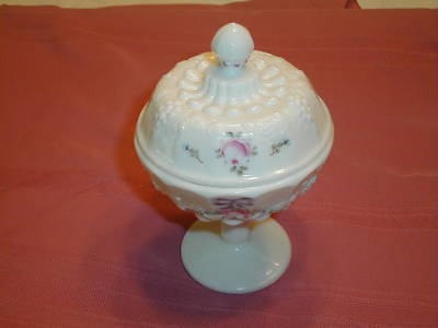 Westmoreland Hand-Painted Milk Glass Compote/Candy Dish