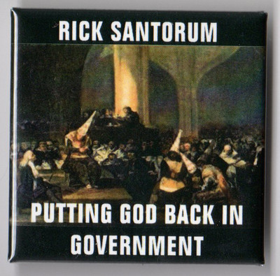 Title (ebay affiliate link): Anti- Rick Santorum campaign button pin 2012 Spanish Inquisition