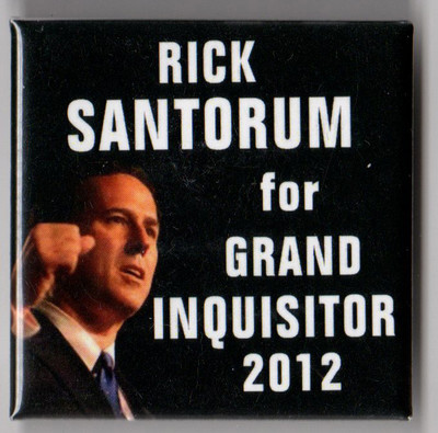 Anti- Rick Santorum campaign button pin 2012 Grand Inquisitor