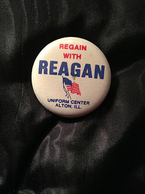 Title (ebay affiliate link): "Regain with Reagan Uniform Center Alton, Illinois" Button pin RARE