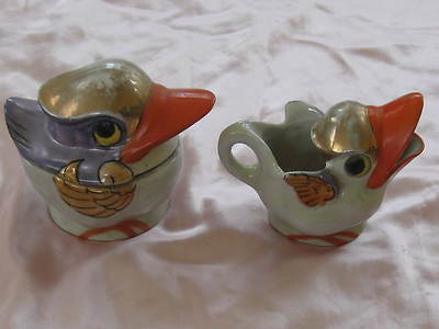 vintage Duck Creamer and Sugar Bowl/Lid Hand Painted - Japan - Very Old