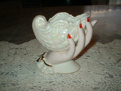 VINTAGE PORCELAIN LADIES HAND HOLDING VASE / PLANTER