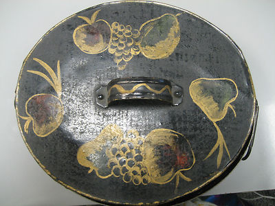 ANTIQUE TOLEWARE METAL/TIN OVAL BOX WITH LID