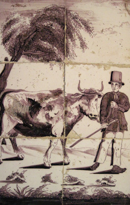 Title (ebay affiliate link): Antique 19th C 6 Wall Tile Painting Ceramic Plaque of Cow Shepherd in Landscape