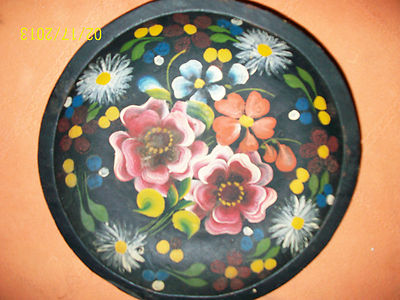 9" HAND PAINTED MEXICO FOLK ART BATEA TOLE TRAY BOWL WALL DECOR