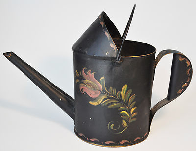 Antique Tin Watering Can with Tole Painting