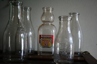 SET OF 5 VINTAGE MILK BOTTLES/VICTORY/MEADOWGOLD MORE..