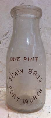 1920'S EARLY ANTIQUE FORT WORTH TEXAS MILK BOTTLE