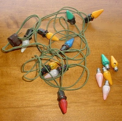 Title (ebay affiliate link): Vintage 1930's Reliance Christmas Cloth Sting Lights C-6 6 Extra Bulbs Bakelite