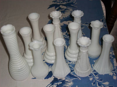 VTG LOT of 12 MILK GLASS VASES BRODY RANDALL FIRE KING
