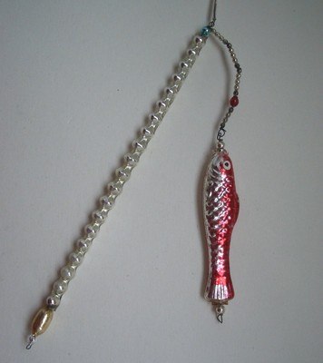 Title (ebay affiliate link): VINTAGE BOHEMIAN GLASS BEADED FISH ON FISHING ROD CHRISTMAS ORNAMENTS