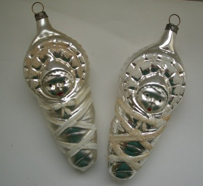 Title (ebay affiliate link): 2 VTG BLOWN GLASS BABY IN BUNTING CHRISTMAS ORNAMENTS