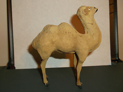 Title (ebay affiliate link): VINTAGE PAPER MACHE CAMEL WITH WOODEN LEGS EXCELLENT NATIVITY ANIMAL 5" HIGH
