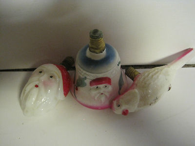 Vintage Double Sided SANTA CLAUSE, BELL & BIRD Figural glass bulb for xmas tree
