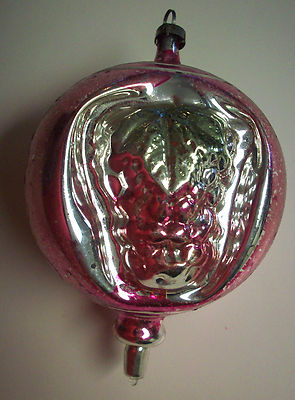 Vintage c30s GERMAN 'GRAPES' CHRISTMAS ORNAMENT MERCURY GLASS 4" Hand blown