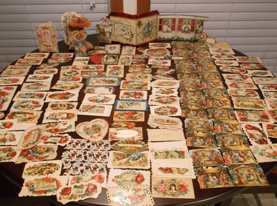 Huge Lot of Vintage Greeting Cards, Valentines, Christmas, Fringed & Honeycomb