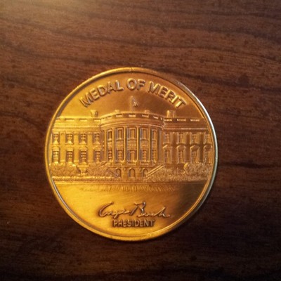 Title (ebay affiliate link): GEORGE BUSH PRESIDENTIAL TASK FORCE MEDAL OF MERIT COIN