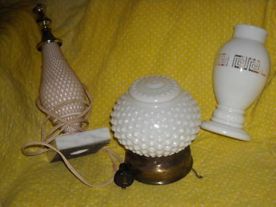 Vintage Milk Glass Hobnail Light Fixture, Vase and lamp