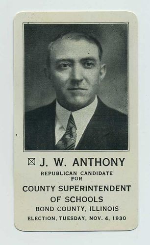 1930 Political Campaign Election Pocket Calendar JW Anthony Bond County IL uj381