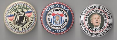 Title (ebay affiliate link): Set of Three, 1 1/2 inch Bush or Obama Guardfrog Pinback Button Cello Badges