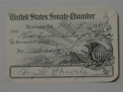 Vintage 1916 Senate Chamber Pass Signed by Benjamin Franklin Shively