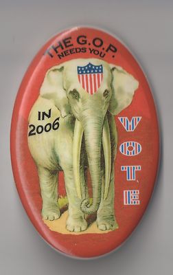 Title (ebay affiliate link): 2 3/4 inch Oval, GOP Needs You In 2006 Vote Guardfrog Pinback Button Cello Badge