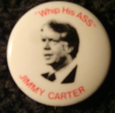 Title (ebay affiliate link): Jimmy Carter Whip His Ass Anti Ted Kennedy Political Pinback 1980 Healthcare Pin