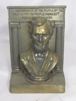Title (ebay affiliate link): Vintage 8 x 5.75 x 3" Brass Plated Bookmark w/ Bust of President Abraham Lincoln