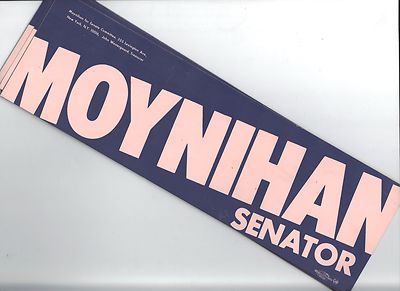 Title (ebay affiliate link): 10 DANIEL PATRICK MOYNIHAN FOR U.S. SENATE NEW YORK 1976 DEMOCRAT BUMPER STICKER