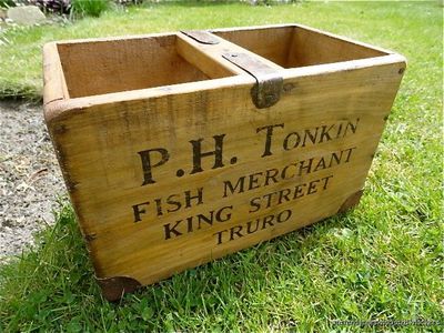 Title (ebay affiliate link): ANTIQUE STYLE WOODEN FISHMONGERS PRAWN BOX CRATE TRUG TRURO CORNWALL FISH BOX
