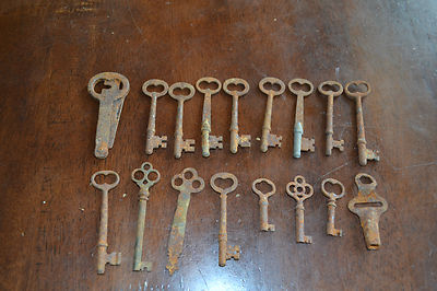 Lot of 17 Antique Keys Skeleton Furniture Locks