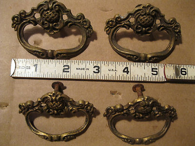 lot antique brass drawer pulls vintage salvaged furniture handle part hardware
