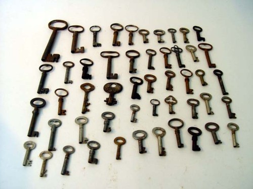 LARGE Lot Of 50 Antique Ornate Barrel Skeleton Cabinet Furniture Keys *NR* #2