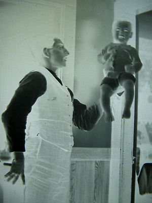 1904 Glass Plate Negative Man-Ralph Suspending Little Boy Houghton on His Hand