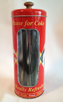 Title (ebay affiliate link): Pause Coca Cola Coke VTG 5c Soda Fountain shop scene Straw dispenser Tin 9 1/2"