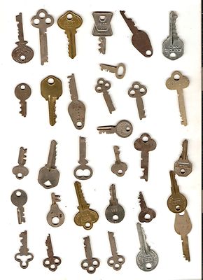 Title (ebay affiliate link): 32 ANTIQUE keys Skeleton Padlock Flat Cabinet Vintage Key SET Old deco