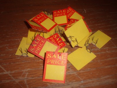 Title (ebay affiliate link): Vtg Lot of 25 NOS Unused Metal Cardboard Push-In General Store Sale Price Tags