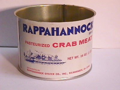 Title (ebay affiliate link): 1LB RAPPAHANNOCK BRAND CRAB MEAT TIN CAN RAPPAKANNOCK OYSTER CO. KILMARNOCK VA