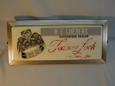 Title (ebay affiliate link): VINTAGE 1940's? H.E. LUEDERS (FEATURE LOCK) 15" X 7" LIGHTED METAL JEWELRY SIGN