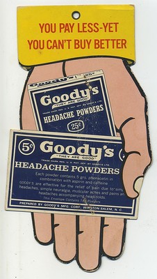 Title (ebay affiliate link): Vintage Fan Pull Sign - GOODY'S HEADACHE POWDERS - Great Graphic