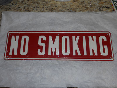Title (ebay affiliate link): New Old Stock NO SMOKING Red Metal Sign White Letters 16" by 4.5"