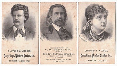 Title (ebay affiliate link): Trade cards for Clifford & Webber and G.B. French & Co. with Mark Twain, B [4736