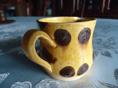 VINTAGE PRIMITIVE YELLOWARE MOCHAWARE STONEWARE PITCHER CREAMER UNQUE