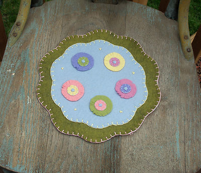 Title (ebay affiliate link): ~Primitive SPRING time penny rug candle mat...Mother's Day....pretty flowers...~