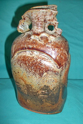 Title (ebay affiliate link): Primitive folk art Molded Salt glaze slipware bottle vintage antique