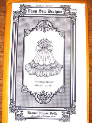 Title (ebay affiliate link): BROWN HOUSE#317 DOLLCLOTHES PATTERN 21-22"ANTIQUE STYLE